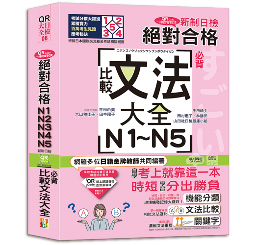 《絕對合格N1,N2,N3,N4,N5必背比較文法大全》現已推出閃亮亮的「QR Code線上音檔版」了。