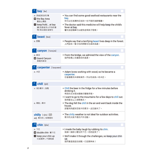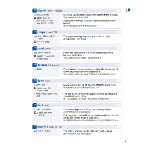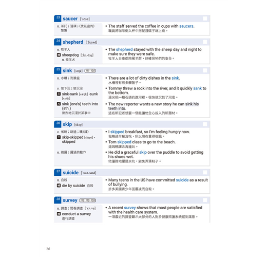 本書單字例句難度適中,適合中級程度的讀者用來補充學測或全民英檢中級程度的詞彙,也適合中級程度以上的學生用來複習或加強基礎使用。針對非參加考試或檢定的一般讀者,也很推薦用來擴充自我的英文單字庫。學好必備單字,讓你的英語學習之路更加游刃有餘!