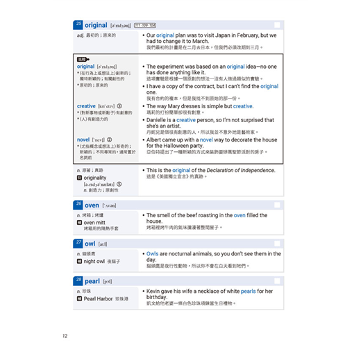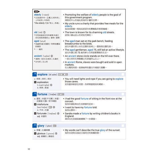 單元裡的每一個主要單字,我們視情況提供相關的同反字彙、其他級數的字根變化衍生字、常用的片語、補充字彙及用法、值得注意的說明或易混淆字比較。學一個字,能同時了解相關資訊,更能達到融會貫通的成效。
