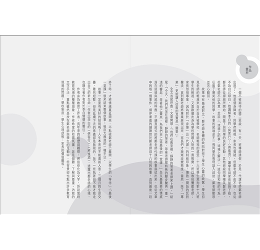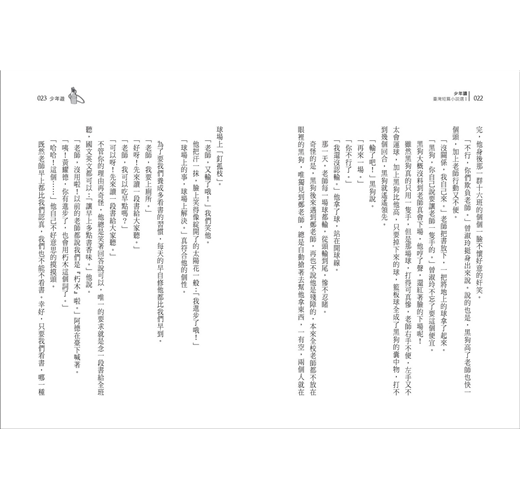 研究青少年小說的學者專家不難發現,臺灣青少年小說的創作歷程也跟國外一樣,都是從中篇小說開始,「洪建全兒童文學創作獎」(1974~1988)的小說部分就是如此。一直到臺灣省教育廳辦理「臺灣省兒童文學奬」(1988~1999),隔年辦理青少年小說徵選,短篇作品才開始受到重視,也才陸續有其他單位開始設置這項獎項。我們也可以從成人作家的短篇作品中找到適合青少年閱讀的,或是描繪青少年啟蒙與成長過程的作品。因此,從過去半世紀中作家書寫的短篇作品裡,要找到適合青少年閱讀的並不是難事,只是要編...