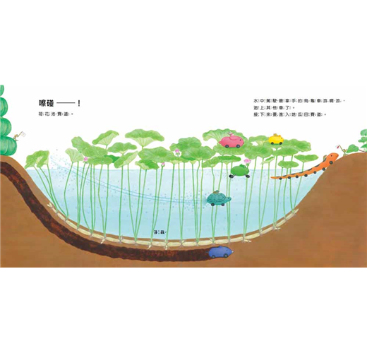 ♦作者將種植約20種蔬菜的菜園,連土壤的狀況都詳細的描繪出來,讓蔬菜的根部生長情況一目了然。