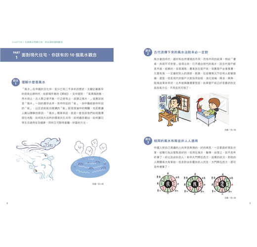 ‧ 將風水知識以文字搭配圖例做說明,變得淺顯易懂又好讀。
