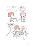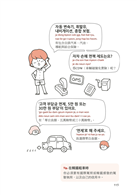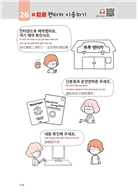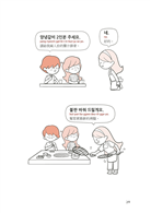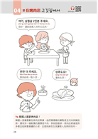 跟一般韓語學習書一段課文只搭配一張插圖的設計不同,本書全書60個單元都以漫畫的形式呈現。對話中文翻譯會以小字呈現在頁面正下方,但讀者可以透過上面的漫畫以及韓文句子就能大致猜測對話內容,之後再看中文翻譯確認即可。就算當天很累不想動腦,順順的讀過去,就能留下印象。
