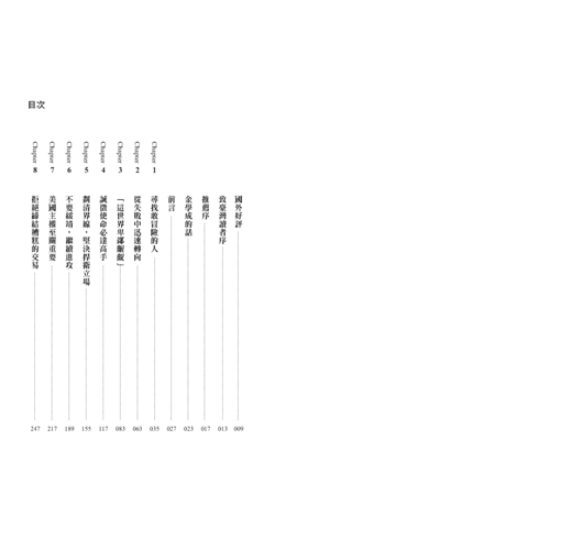 書中不僅顯露當前國際外交與地緣政治的重要回顧,也映現世界趨勢和參與者的路線圖。對任何想要理解美中關係的未來挑戰,以及臺灣在其中角色的人而言,這是一本必讀之作!