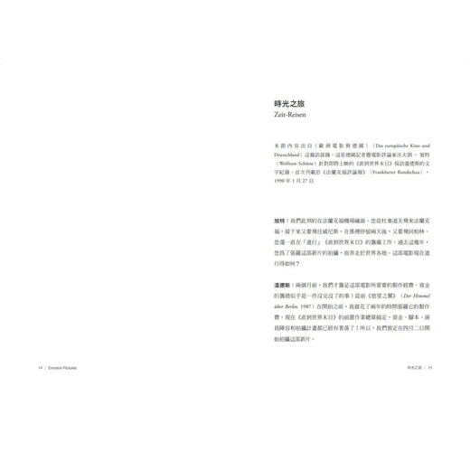 台灣首度譯自德文的溫德斯電影寫作全集三部曲,本書收錄了第三部,是溫德斯1988年至1992年期間發表的文章、演講稿和訪談紀錄。1988年的他,已陸續完成代表之作,包括1984年《巴黎,德州》、1987年《慾望之翼》等片,他開始以更高視野反思電影,回顧自身歷程,外界訪談也更深入探索他身為德國導演的身分認同、對城市文化的思索與影像觀。