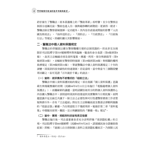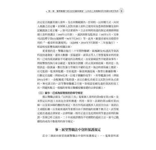 第一章 警察職權行使法的回顧與展望:以科技工具蒐集或利用資料規定為例/李震山