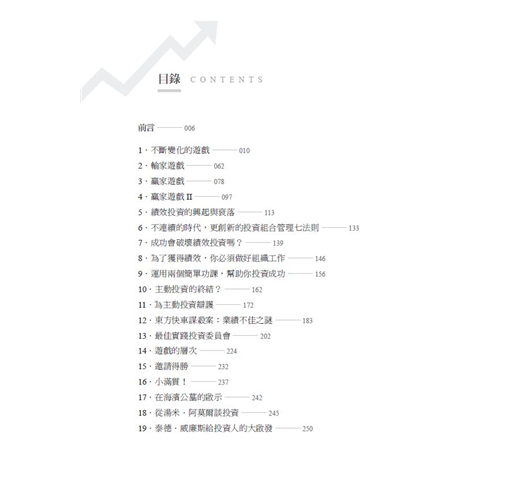 「半個多世紀以來,查爾斯.艾利斯一直是投資管理產業發展的先驅。在與大師們一起工作的過程中,查爾斯明白在投資管理中取勝是非常困難的。這本書,彙編了他多年來一些最優秀的作品,提供了支援他最堅定信念的軼事和資料:專注於目標,正確把握大局,讓指數來處理其他的事。」──泰德•塞德斯,美國特許財務分析師、資本配置有限公司創辦人