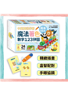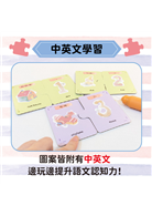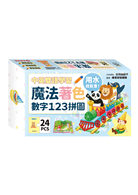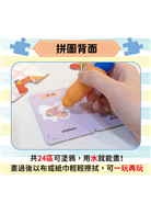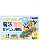 1. 拼圖裡有各式各樣的數字及玩具,快拿出來配對拼拼看,完成配對後,用水畫筆來上色吧!塗鴉後,漂亮的圖案就出現了!背面還附有中英文字學習,提升認知力哦!