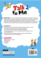 Talk to Me 系列共分為三冊,此書為第一冊。希望讓國小階段的學習者,經由大量的對話練習,逐步發展英語口說技能。每冊有 16 個單元,將多元、富有創意的主題,融入生活情境、假想情境和經典故事,幫助學生培養用英語溝通的能力與自信。本系列讓學生能夠以兩人活動、小組活動或全班活動的方式,增加跟同學們練習開口說英語的機會。每單元與書末附有趣味活動,例如賓果、桌遊等,讓學生能在輕鬆有趣的情境下運用英文。透過由淺入深的學習任務和單元主題,引導學生進行有趣的對話,並學習新的單字和句型,增進其英文實力。