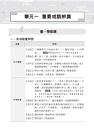 單元一 重要成語辨識:網羅考題趨勢中常考且易誤用誤讀的成語。朔本追源精通每個成語的【出處】、【釋義】、【義近】、【義反】四個重點項目,厚植成語辨識能力。