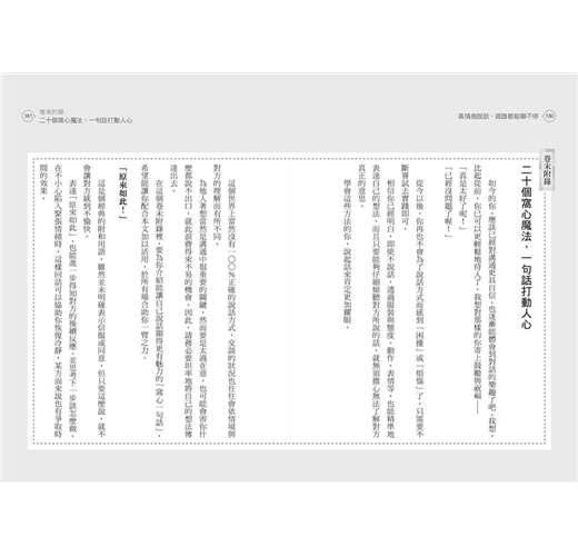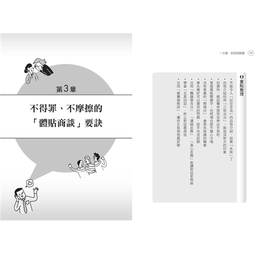書中的「拒絕3要點」與「動人9要訣」,讓你不管拒絕、挽回、請託……任何場合都不失貼心,無須害怕引人不快,例如: