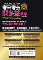 多益測驗(TOEIC)分為聽力測驗與閱讀測驗,內容包含照片描述、應答、簡短對話&獨白、句子&段落填空及閱讀應答等問題。其實不管是什麼題型,會考的單字都大同小異。本書集結坊間多益書籍、多益考古題、英文報章雜誌、英文新聞及各類商業詞彙,利用電腦比對嚴選出最常考的1,800個單字,考前衝刺必備!