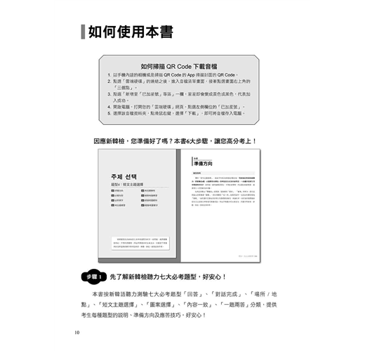 ◎跟著《新韓檢初級聽力全攻略 新版》備考6大步驟,保證高分過關!