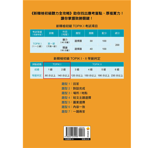 1.歸納出TOPIK I 七大必考題型,最完整!