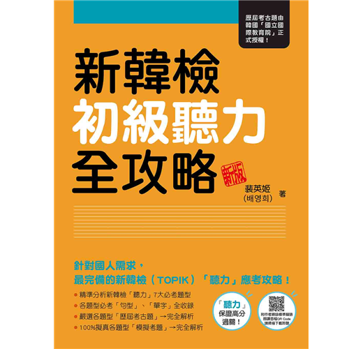 不知如何準備新韓檢初級「聽力」科目嗎?有了韓語名師裴英姬老師所著的《新韓檢初級聽力全攻略 新版》,保證勝券在握!