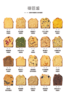 1. 以基本的磅蛋糕、馬芬為基礎,搭配各種配料,變化不同口味。