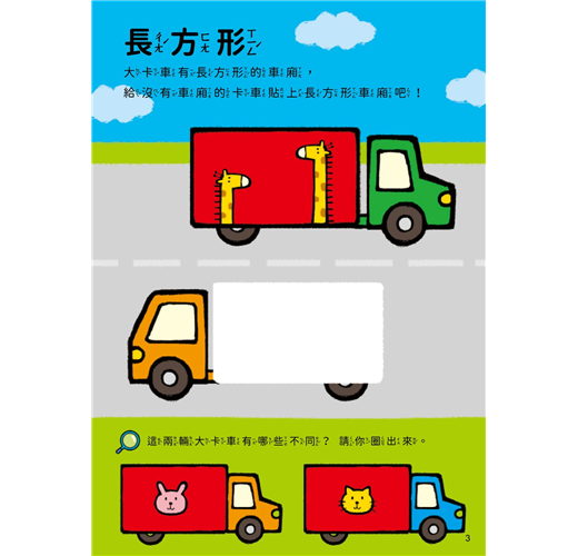★ 認知發展:透過本書認識各種基本的形狀,從圓形到方形,從三角形到星形,一一展開形狀的奇妙世界,豐富認知能力。