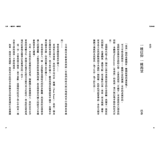 直到長大弄清楚,我的名字叫巴奈.庫穗(Panai Kusui),我是一個身在台灣的卑南族人。我不是中國人。雖然我現在說華語寫中國字,也擁有中華民國身分證,但我仍舊不是中國人……
