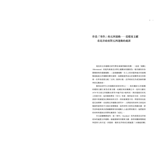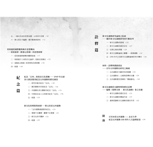 本書作者歐陽哲生教授長期從事五四運動及其代表人物研究,已出版多本富有影響力的相關著作和編著。本書是他近七八年來研究五四運動論文的最新結集,按內容將收文分為三篇:「本事篇」根據原始文獻或檔案材料,回到歷史現場,客觀呈現五四運動的本來面目;「紀念篇」溯流窮源,系統清理各大黨派紀念五四運動的話語系統,解析五四話語的政治文化蘊含;「詮釋篇」檢視百年五四新文化運動研究論域之拓展歷程,全方位地展現新文化運動的絢麗畫卷,重新估價五四運動的歷史意義。