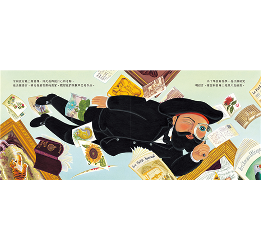 如今看到《亨利.盧梭的奇幻叢林》這本書,讓我們好像走進時光隧道,在19世紀的巴黎街頭巷尾美術展覽會中,遇見了這位素人畫大師,真好啊!