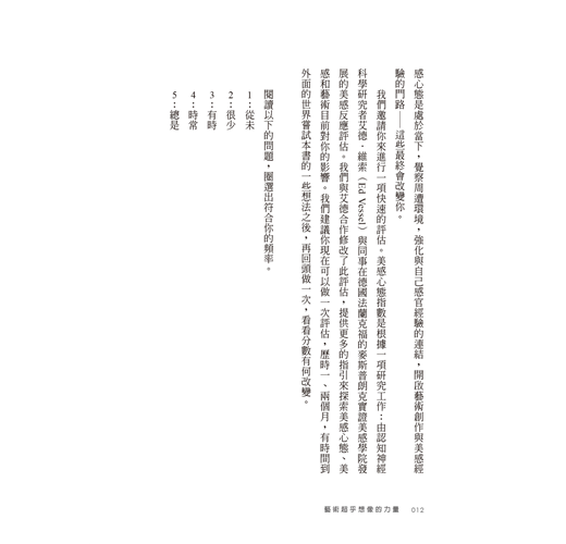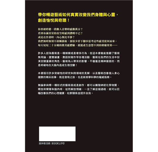 本書援引許多突破性的研究和跨領域的見解,以及藝術改善個人身心建康的精采故事,既是發現之旅,也是新美學科學的權威指南。