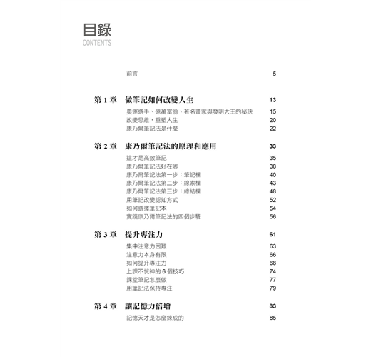 好的筆記方式可以讓我們變聰明。康乃爾筆記法能幫助我們建立邏輯架構,強化知識吸收與產出的能力,同時提升行動力與專注力,加速成長。只要改變記錄事情的方法,就能幫助我們抓對重點,提高學習效率與工作效能,為自己寫下成功的人生。