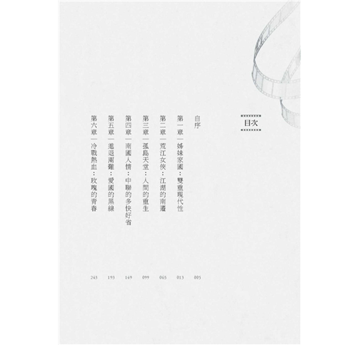 二○○二年博士口試剛過,獲愛玲邀稿,參與國泰/電懋專題研究,於是開展了我與香港電影資料館的合作。本書中第八章的初稿,是應愛玲策劃《風花雪月李翰祥》(二○○七)專題而作。第一章及第四章的初稿,寫成後的第一位讀者,也是黃愛玲。若非愛玲持續督促、鼓勵,這個橫跨二十年的計劃,不可能長成今日的面貌。自從她去了不再需要書的地方,雷競璇先生饋贈愛玲珍藏的資料,這些一直貼身陪伴我,彷彿她仍在耳邊叮嚀,必須脫離與超越人云亦云,包括過去的我,各種定見與謬誤。