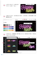 Part 2 文字創意與風格 Tip 1 純文字資料大量建立,單一款式設計 Tip 2 圖、文資料大量建立,多款式設計 Tip 3 大量文字翻譯 Tip 4 上傳字型 Tip 5 可商用免費的字型介紹 T...