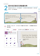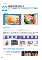 Part 8 Q & A 解答常見疑問 Tip 1 Canva 素材商用版權需知 Tip 2 訂閱與其他購買費用的報帳方法 Tip 3 設計電子書線上翻書效果 Tip 4 查看有多少人瀏覽你的設計 Tip 5 找不到之前完成的設計專案 Tip 6 上傳 PDF 文件進行設計 Tip 7 上傳 PowerPoint 簡報進行設計 Tip 8 將簡報專案轉換成影片或網站專案 Tip 9 將專案還原成之前製作的版本 Tip 10 快速取得知名品牌的識別設計與標準色彩 Tip 11 顯示尺規和輔助線、印刷出血 Tip 12 印刷的關鍵要素