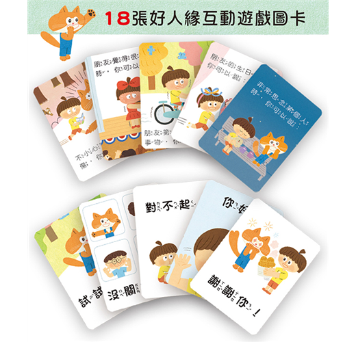 ★18張好人緣互動遊戲圖卡,讓孩子可反覆學習,也可進行親子互動遊戲。