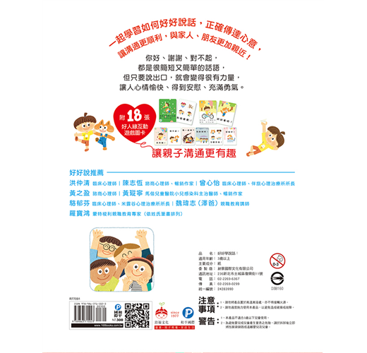 「好好說話,在家庭教育中特別重要。跟家長討論的經驗中,發現家長先學會好好說話,對孩子更有幫助。雖然童書裡提到的說話難度不高,家長卻不一定做得到。《好好學說話》裡面的表達,友善有愛,很值得家長常對...