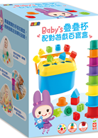 4個字母積木、4個形狀積木、8個疊杯、1個收納盒、1本操作說明
