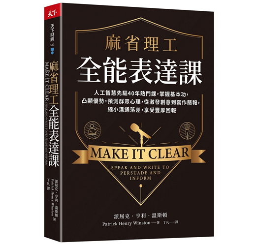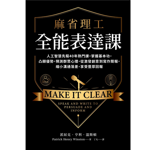 本書作者在MIT任教近50年,是最受歡迎的教授之一,在MIT人工智慧實驗室擔任主任25年,致力開發人類智慧AI系統。他認為無論想法多有見地,除非能以清晰明確且富有情感的方式表達,否則難以引人注意。