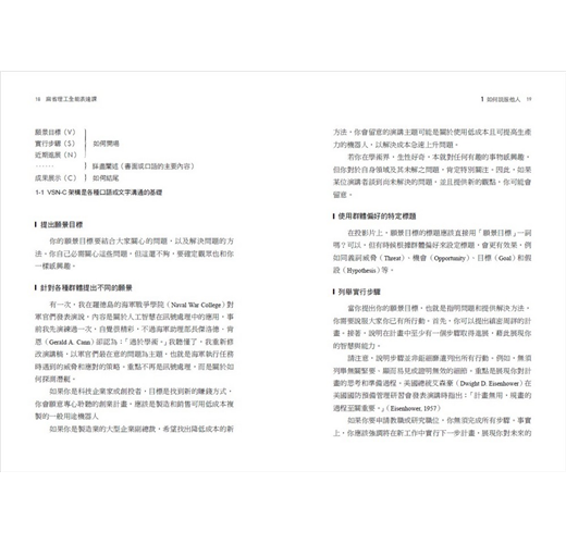 ◎有效說服:以VSN-C架構(願景目標、實行步驟、近期進展、成果展示)來安排內容,有效溝通。