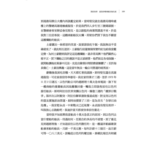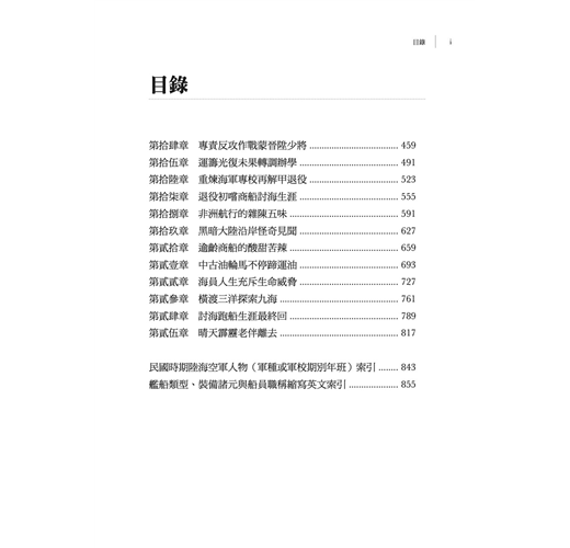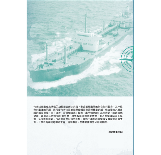 亂世中服勤軍旅近三十七載,親歷戰火洗禮:艦訓時逢兵變叛逃,後率艦於浙江沿海與敵三軍對戰,且兩度險登失事軍機。退役後轉業至海運界各航商的雜貨船、散裝船、油輪服務,航跡遍佈全球,造訪過三十餘國百多個海港,海程累計達三十萬浬。