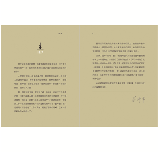 與音樂無淵源者,則不斷有挖寶的驚喜。跟著作者對提琴的熱情與豐富知識,一步步進入外人難窺堂奧的提琴世界,或知悉「秘密」,或讚佩工藝,或對於特別的製琴城鎮之旅印象深刻,不知不覺也能體會其間趣味,並愛上提琴,更進一步了解音樂、藝術與古董。