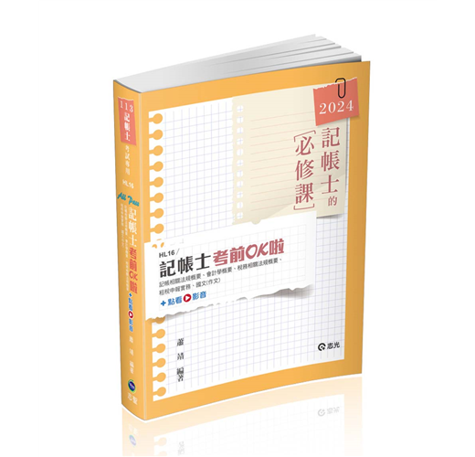 筆者講授記帳士考試相關科目多年,用過許多相關教材,都是一個科目一本書或一本教材,四科專業科目準備起來內容頗多,有些書又過於艱澀,有些又過於簡單,有些則範例不足,緣此,而有本書之作。本書撰寫將四科專業科目合併成一本關鍵集錦(含附錄:國文),以最新法條編寫,按最新命題大綱整理出各考科重點,並將歷屆記帳士試題與最新國家考試相關試題羅列於各篇的精選試題,以利讀者參加記帳士考試。