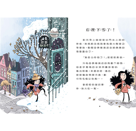 這次惡夢雜貨店又怪事降臨了,店內無處不飄落著一片又一片的雪花,妮妮、店幽靈屁沙跟老闆怪爺爺都直打哆嗦。而且,只有「惡夢雜貨店」下著雪!?