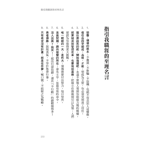 作者特別整理在軍旅生涯中,引領他不斷向前、終身受用的名言,