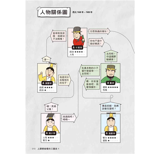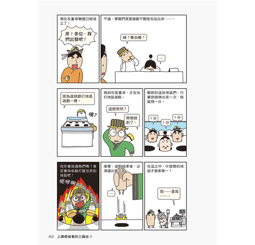 即使三國時代已從108課綱消失,但這段歷史仍相當精彩,更是現在許多動漫、電玩、小說、戲劇等經常取材的寶庫。藉由閱讀輕鬆搞笑的漫畫,不僅能打開聊天話題,生活中信手拈來的幽默歷史哏,還能提升人文素養,讓人講起話來有趣又有料──如果學生上課偷看這套書,我還真能體諒老師有多難為。