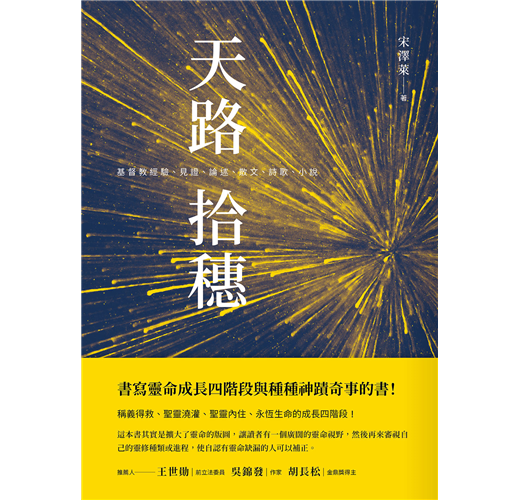 《天路拾穗》是宋澤萊經過反覆確認對於基督教信仰的辯證之作,從自我懷疑、抽象玄想、依經解義到見證神蹟、稱義得救、聖靈澆灌進而聖靈內住再到永恆生命。宋澤萊以自身豐富的基督教知識與深度的神蹟見證,探討靈命成長四階段等文章,更分享基督教文學創作:散文、詩歌以及小說。作者期待基督徒和慕道友,能追尋上帝及真理,拓展靈命版圖及視野,探究深奧的靈命經驗。