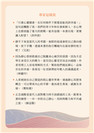‧因為靜心曾拯救過自己脫離身心痛苦的深淵,因為不忍學生承受巨大的壓力,甚至因心靈受苦而走向絕路。作者用理工人容易理解的方式,幫助他們親近靜心,品味存在的幸福,我看見一位老師帶給年輕人的滿滿溫柔。(林麗玲)