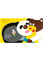 ⋯⋯生意清淡的大熊廚師,意外買到一個熊貓平底鍋,裡面有一隻小貓熊精靈(小湯匙),帶著大熊廚師唸咒語、開心做料理,做出好吃的料理,因而扭轉了幾乎要關門大吉的餐廳的命運,大熊廚師也找回做料理的快樂和自信。《貓熊平底鍋》除了跟〈小精靈與老鞋匠〉一樣,是一位匠人受到神奇力量幫助的故事,還安插了一個有趣的「禁忌」。而「禁忌」通常是拿來「打破」的。果真,在《貓熊平底鍋》中打破禁忌之後,所產生的畫面和大轉折,都令人驚喜。我不破梗,這段故事高潮,就請大小讀者自己親身體驗囉。