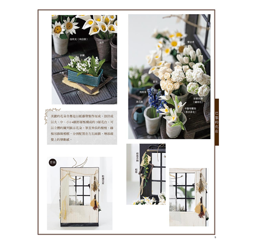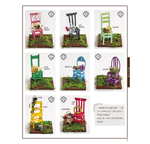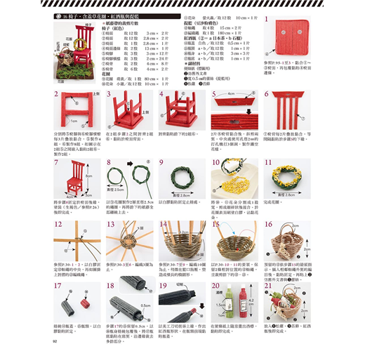 新手也能開心製作的娃娃屋家飾&雜貨迷你模型輕巧的紙繩帶取得容易,不斷研發的色彩更是日益繽紛豐富。相較於一般用來製作袖珍娃娃屋模型的木料,手作難度低,但可塑性卻很高。無論是美麗的花束植栽、復古的桌椅、具有存在感的大型櫥櫃、鐵藝窗花,還是畫龍點睛的藤籃、皮靴、洋傘、單眼相機、縫紉機等小物,全都是使用紙藤帶即可製作完成!
