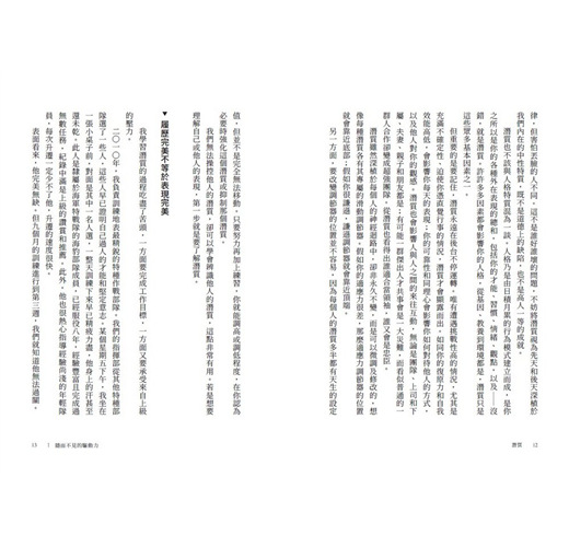 【推薦序】 「我對信任的了解,很多都來自里奇‧第凡尼。真高興他寫了這本書。每個想要提升信任品質和團隊表現的人,都應該參考這本書。」 ──《紐約時報》暢銷作家賽門‧西奈克(Simon Sinek),著有《無限賽局》及《先問,為什麼》 「若說二○二○年讓我們學到什麼教訓,那就是情況隨時都會失控。第凡尼的這本精彩傑作說明了為什麼有些人即使遇到困境也能成長茁壯。這跟我們的恆毅力、心智敏銳度、動力和領導力從何而來有關。光是精通技能不足以帶來成功,懂得如何培養自己的潛質才是關鍵。」 ──《紐約時報》暢銷作家查爾斯‧杜希格(Charles Duhigg),著有《為什麼我們這樣生活,那樣工作?》 「了不起的作品。作者用頂尖人才的經驗和深厚的智慧來解釋有關人類表現中最少人了解卻無比重要的面向。若是你自稱或想自稱是「領導者」,這本書是必讀之作!」 ──《紐約時報》暢銷作家史蒂芬‧科特勒(Steven Kotler),心流集體研究機構研究總監 「卓越的公式是什麼?如何打造最佳版本的自己?很多人探索過這些問題,但沒有人像第凡尼在這本從不同角度切入的精彩之作中回答得如此深入透徹。這本書提出了一個達到最佳表現的強大新模型,更讚的是,它也是你反省、評估和持續提升表現的實用工具箱。若是你在意自己的表現有沒有愈來愈好,一定要買這本書。」 ──《紐約時報》暢銷作家丹尼爾‧科伊爾(Daniel Coyle),著有《高效團隊默默在做的三件事》