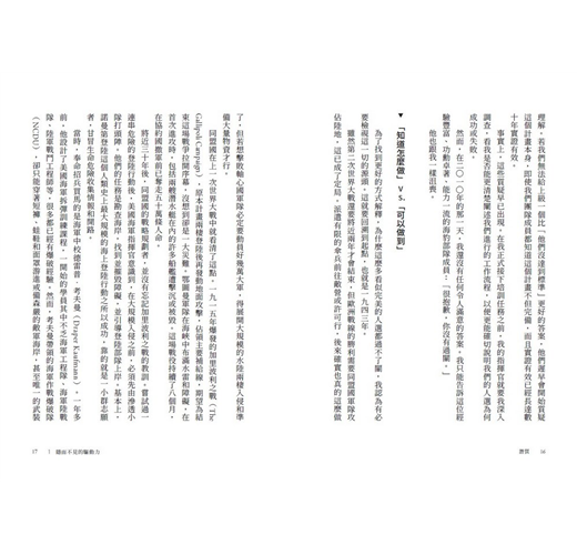 目錄 1. 隱而不見的驅動力 2. 如何在跳傘出狀況時存活下來 3. 夢幻團隊的弔詭 恆毅力 4. 勇氣 5. 毅力 6. 適應力 7. 復原力 恆毅力總整理 心智敏銳度 8. 狀態意識 9. 區隔化 10. 任務切換 11. 學習力 心智敏銳度總整理 動力 12. 自我效能 13. 紀律 14. 開放心態 15. 狡猾 16. 自戀 動力總整理 領導力 17. 同理心 18. 無私 19. 真誠 20. 果斷 21. 承擔 領導力總整理 團隊力 22. 正直 23. 盡責 24. 謙遜 25. 幽默 26. 動態層級組織 27. 其他潛質 28. 破解你的潛質調色盤 29. 發揮最佳表...