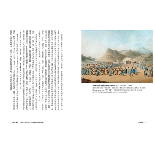大航海時代中來到中國的西洋人,在沒有攝影術的協助下,除了文字,也仰賴繪畫傳遞其見聞,例如乾隆晚期銜英王喬治三世(George Ⅲ,1738-1820)之命來華拓展貿易的馬戛爾尼使節團(The Macartney’s Embassy)回英後,不少隨團成員紛紛發表了訪中聞見錄,使節團中的製圖員(Draughtsman)威廉.亞歷山大(William Alexander,1767-1816),擔任隨團畫家托馬斯.希基(Thomas Hickey,1741-1824)的助手,也在回國後將自己在中國時的寫生手稿加以整理,出版了《中國服裝》(The Costume of China)、《中國人的服飾和習俗圖鑑》(Picturesque Representations of the Dress and Manners of the Chinese)以及《一七九二至一七九三年沿中國東海岸之旅途中各海岬、海島之景貌》(Views of Headlands, Islands &c. Taken during a Voyage to, and along the Eastern Coast of China, in the Years 1792 & 1793, etc.)等三部以中國為主題的圖冊。