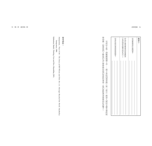 在充滿選擇和干擾的世界中,任何的猶豫不決都可能會讓人陷入瓶頸,這可能導致錯失機會,甚至造成壓力、損害關係。在《決策思維》中,知名行為經濟學家謝赫拉爾‧巴努里教授提供了一個全新的決策框架,讓你能夠一次又一次地選擇你想要的生活。