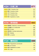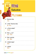 ►緊接著第三篇~第九篇的「抵達機場」、「入住飯店」、「交通工具」、「享用美食」、「購物逛街」、「觀光遊覽」、「緊急求助」等篇章,涵蓋40個的場景,讓您一書在手,輕鬆開口說,走遍西語系國家!