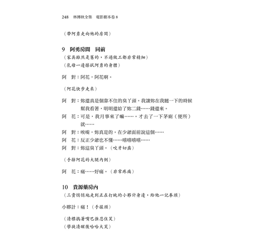 卷二《電影劇本卷8》附〈林摶秋生平暨創作年表〉與〈林摶秋劇作演映紀錄一覽〉。